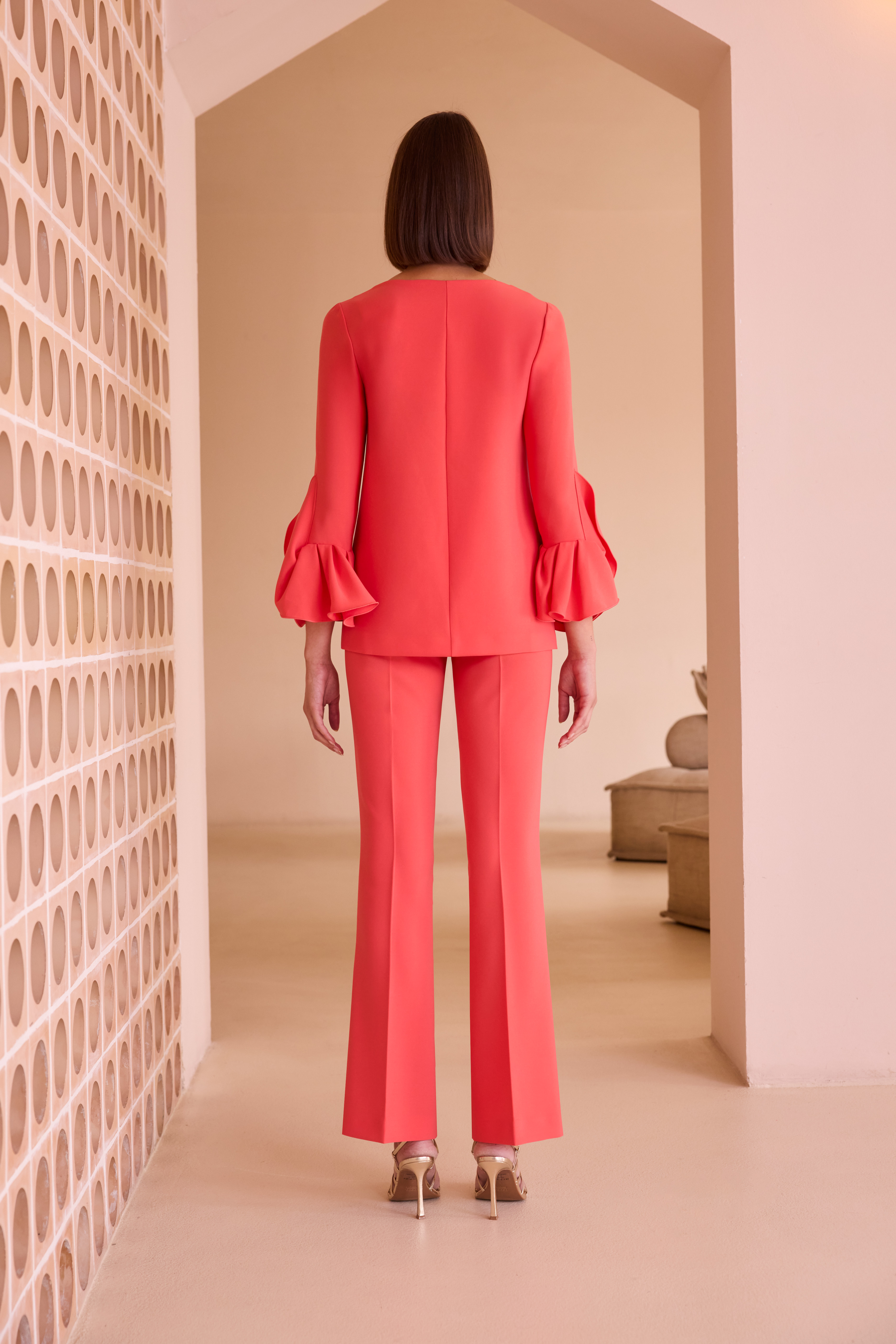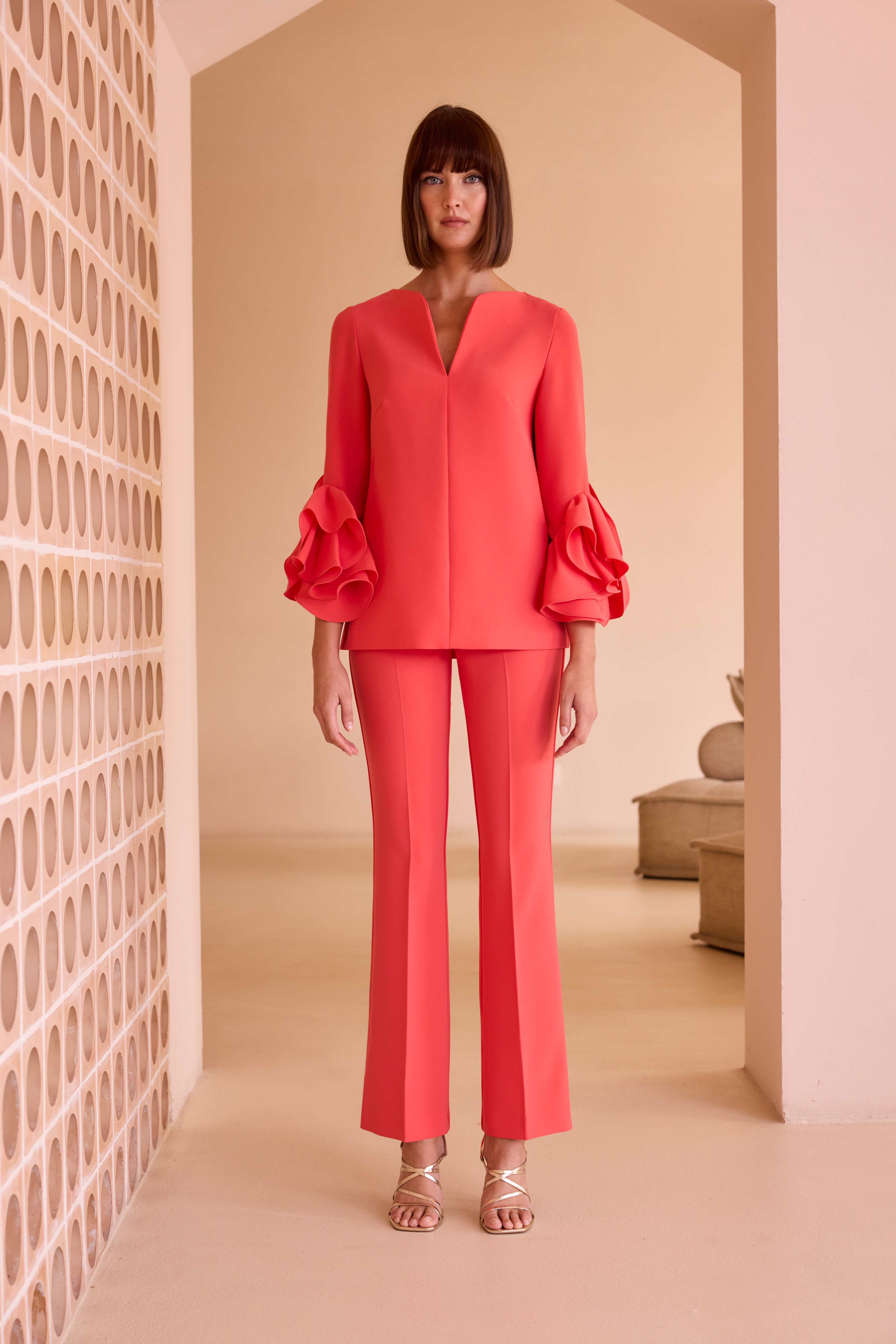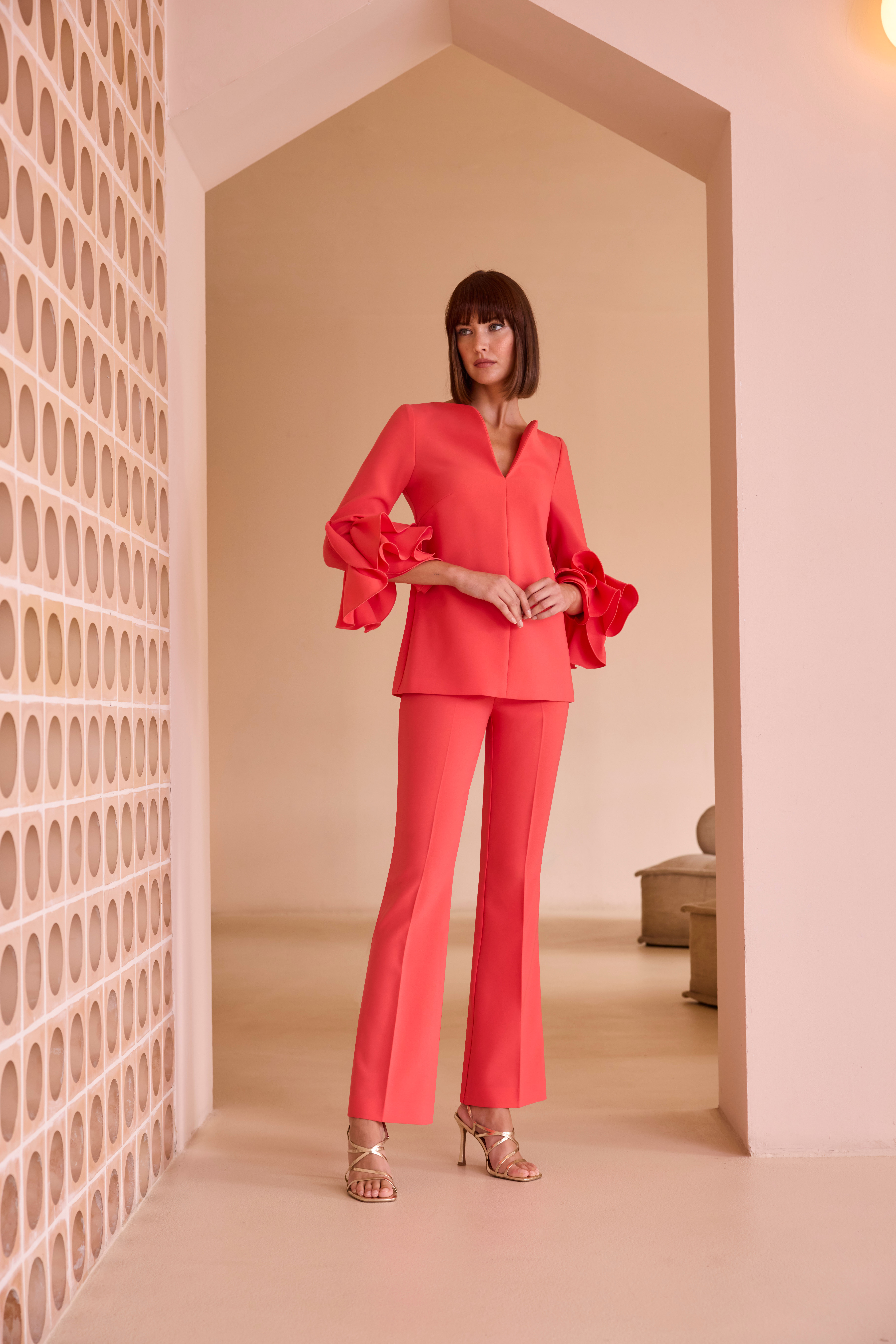 Conjunto pantalón de Carla ruiz con blusón y pantalón. Blusón con manga y escote en V.