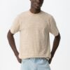 Camiseta de corte recto, en tono beige claro, con finas rayas y manga corta casual.