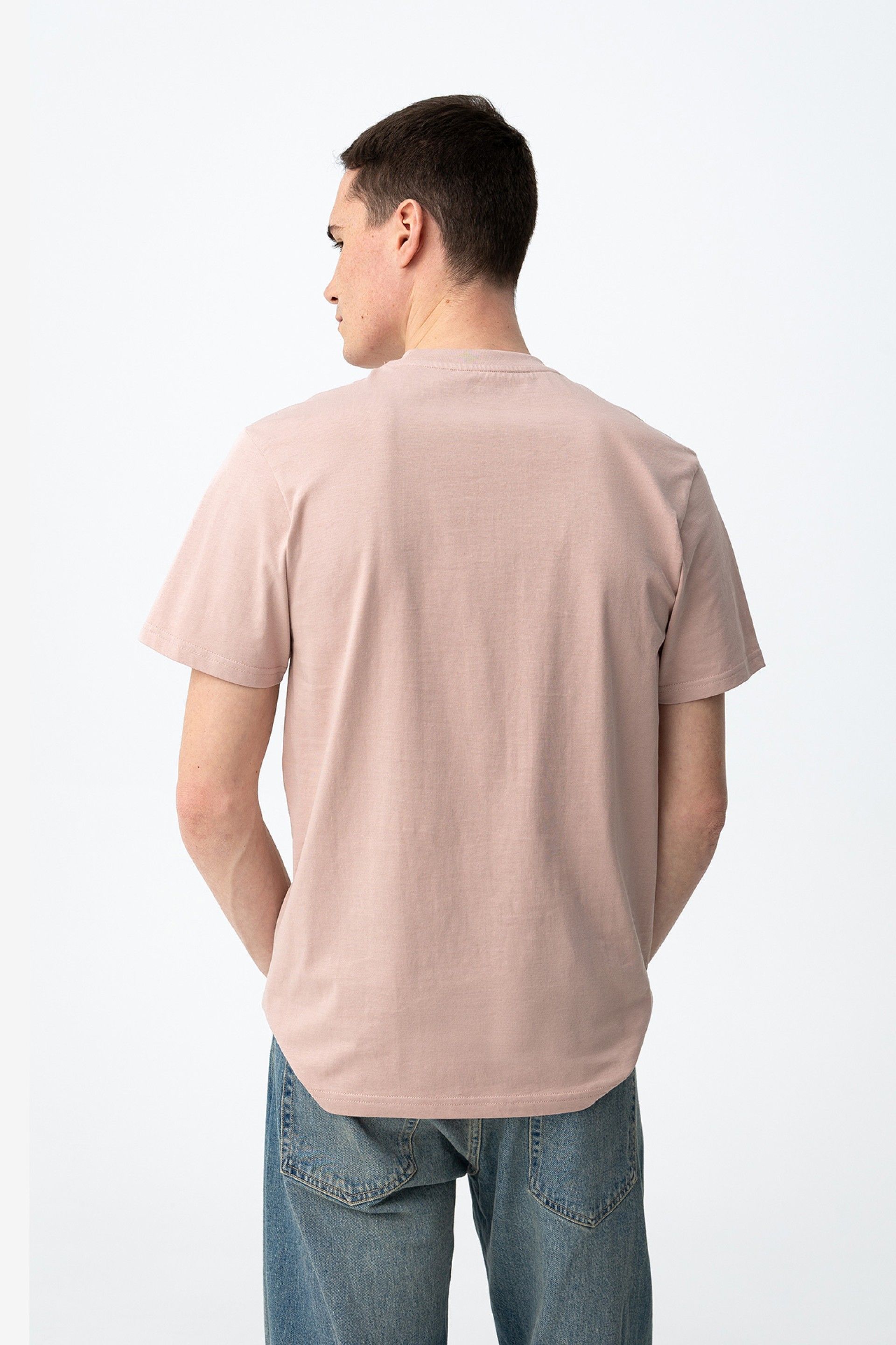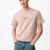 Camiseta de color rosa claro, corte recto, manga corta y estampado minimalista en el pecho.