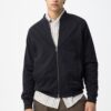 Chaqueta tipo bomber con cuello redondo y cremallera frontal metálica. Dos bolsillos laterales integrados.