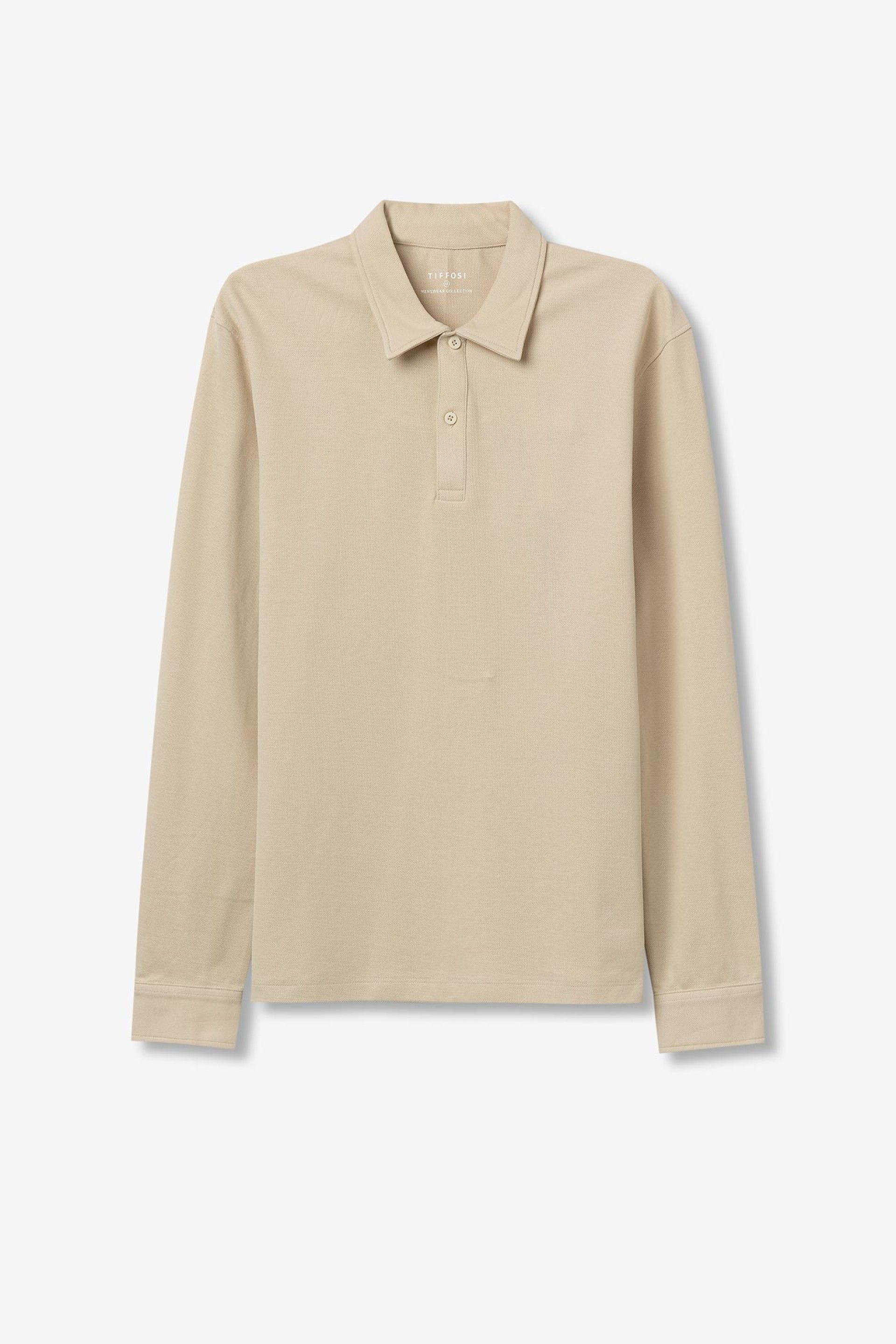 Polo de manga larga. Cuello clásico con dos botones. Puños con cierre de botón.