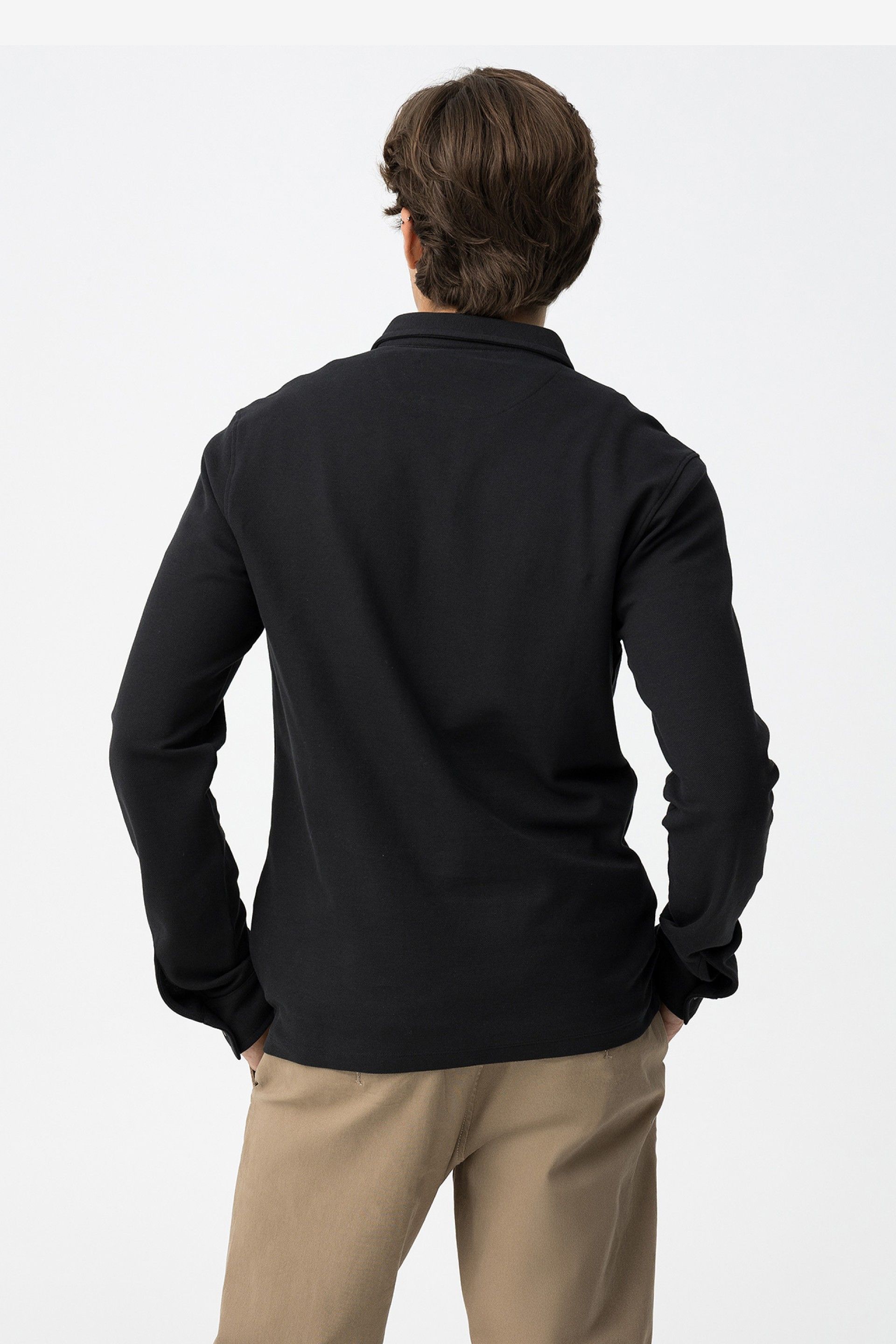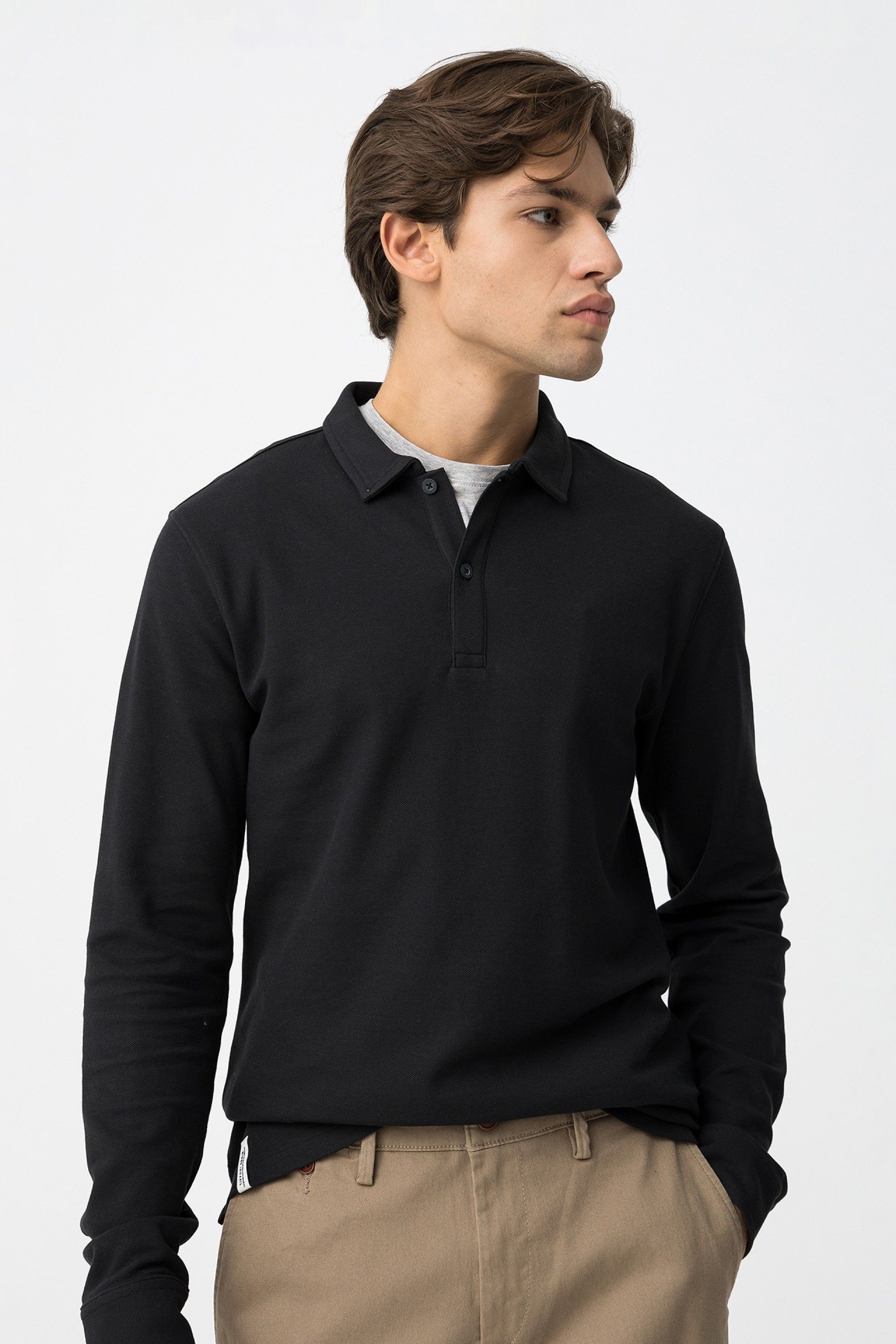 Polo de manga larga. Cuello clásico con dos botones. Puños con cierre de botón.