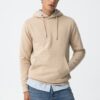 Hoodie beige con capucha ajustable, bolsillo canguro y puños en rib. Corte regular.