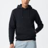 Hoodie beige con capucha ajustable, bolsillo canguro y puños en rib. Corte regular.