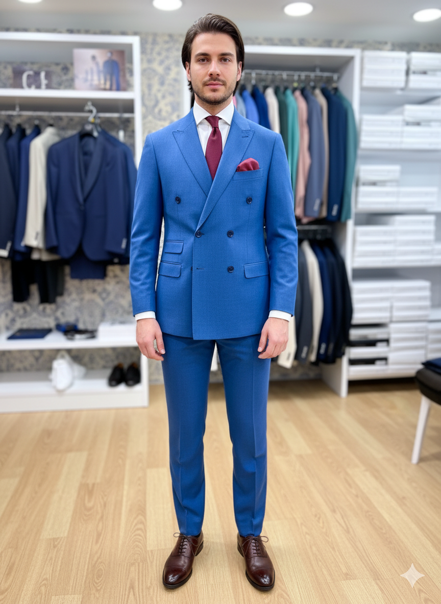 Traje cruzado azulón de Roberto Bassi. Disponible solo en tienda TLF: 615581650