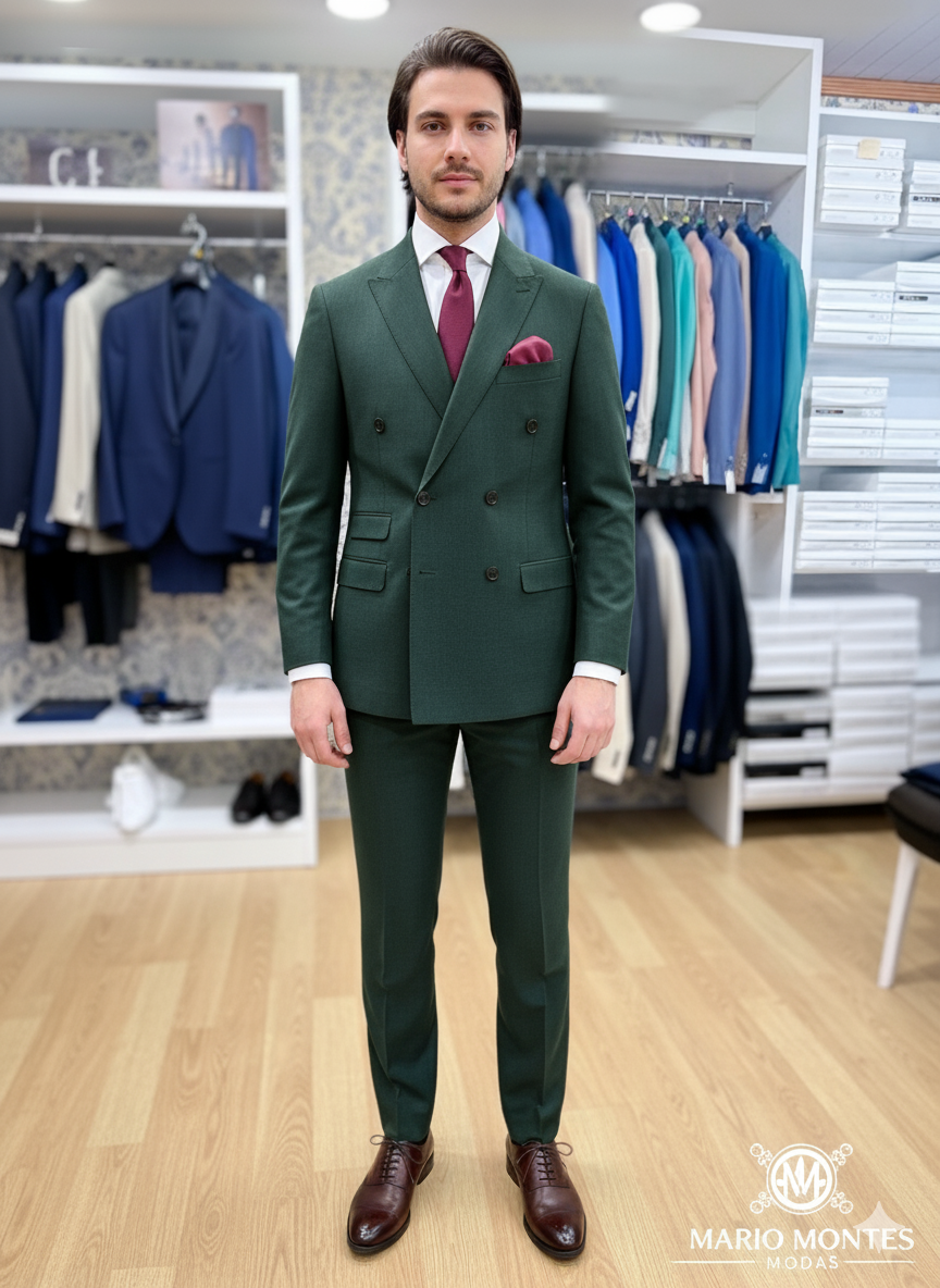 Traje cruzado verde de Roberto Bassi. Disponible solo en tienda. TLF: 615 581 650