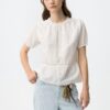 Blusa blanca de manga corta con bordados delicados y corte regular, ideal para un look casual.