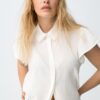Camisa fluida de color crudo, corte recto, manga corta ancha y cuello clásico con forma estructurada.
