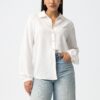 Camisa regular fit de punto con relieve y botones joya. Cuello Peter Pan con volante, manga larga con botón en los puños y bajo curvo.