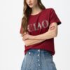 Camiseta roja de manga corta, corte regular, con estampado frontal ‘CIAO’ en blanco.