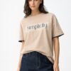 CAMISETA MANGA CORTA CON RAYA HORIZONTAL Y LETRA.