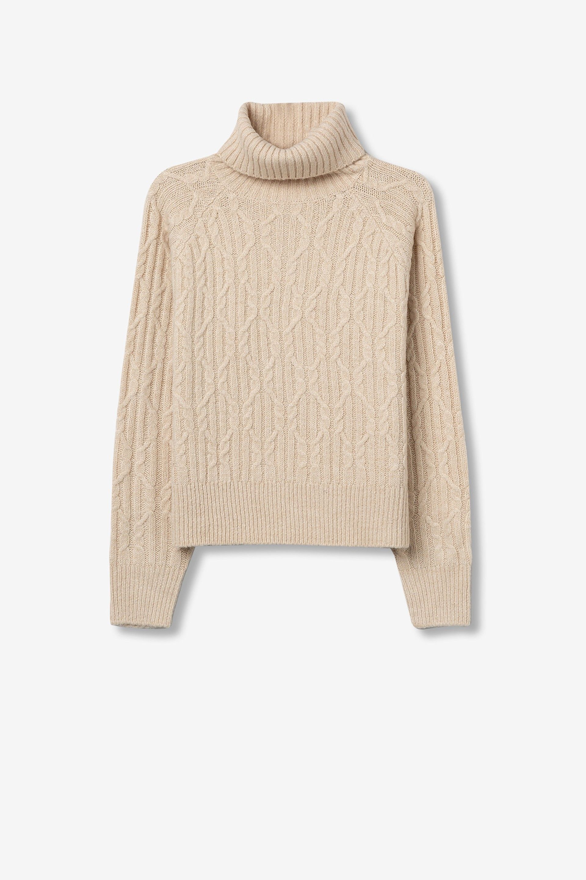 Jersey regular fit de punto trenzado, cuello alto, manga larga y acabados de canalé.