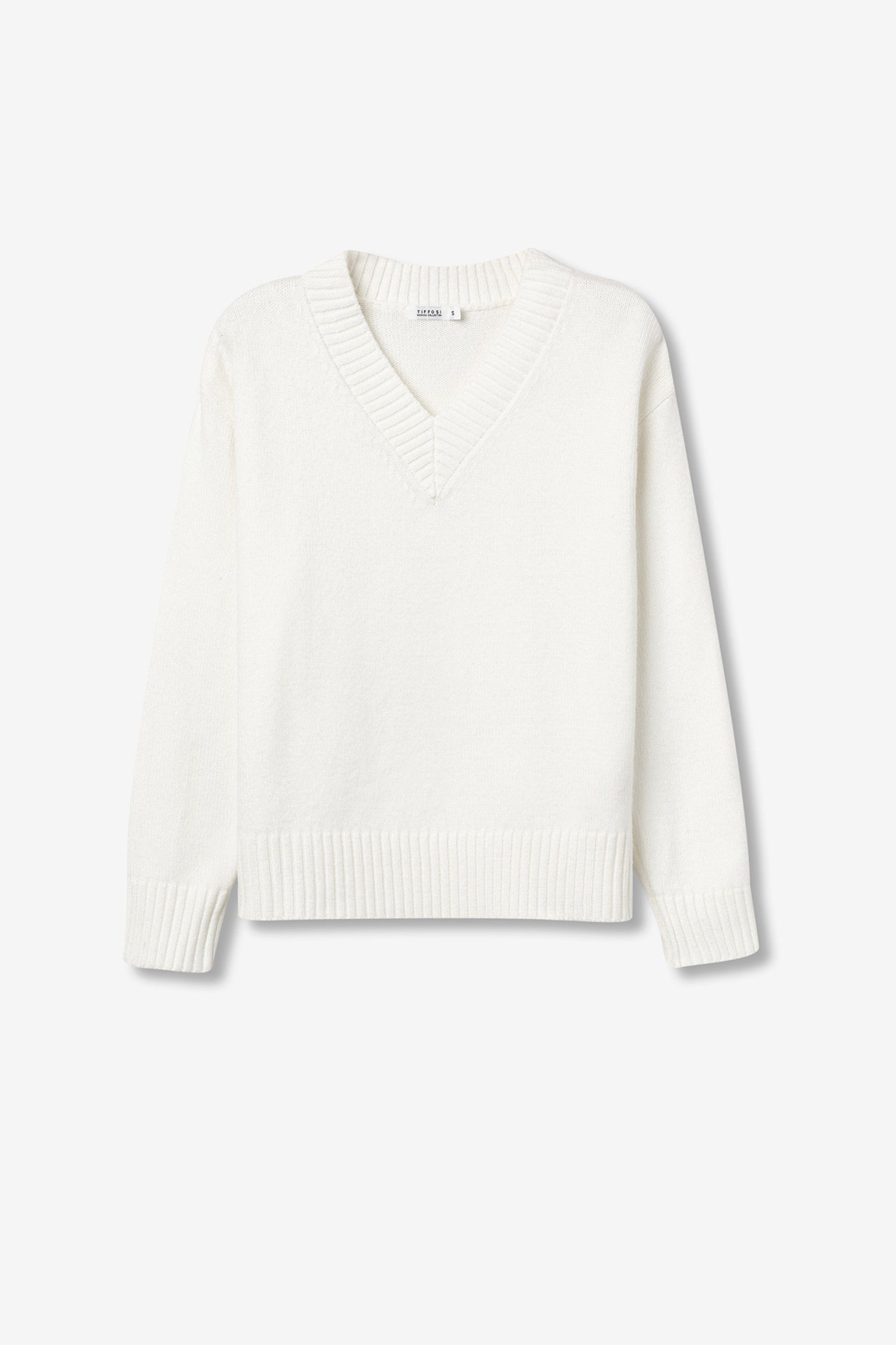 Jersey de manga larga relaxed fit. Punto texturizado con cuello en V. Puños y bajo en rib.