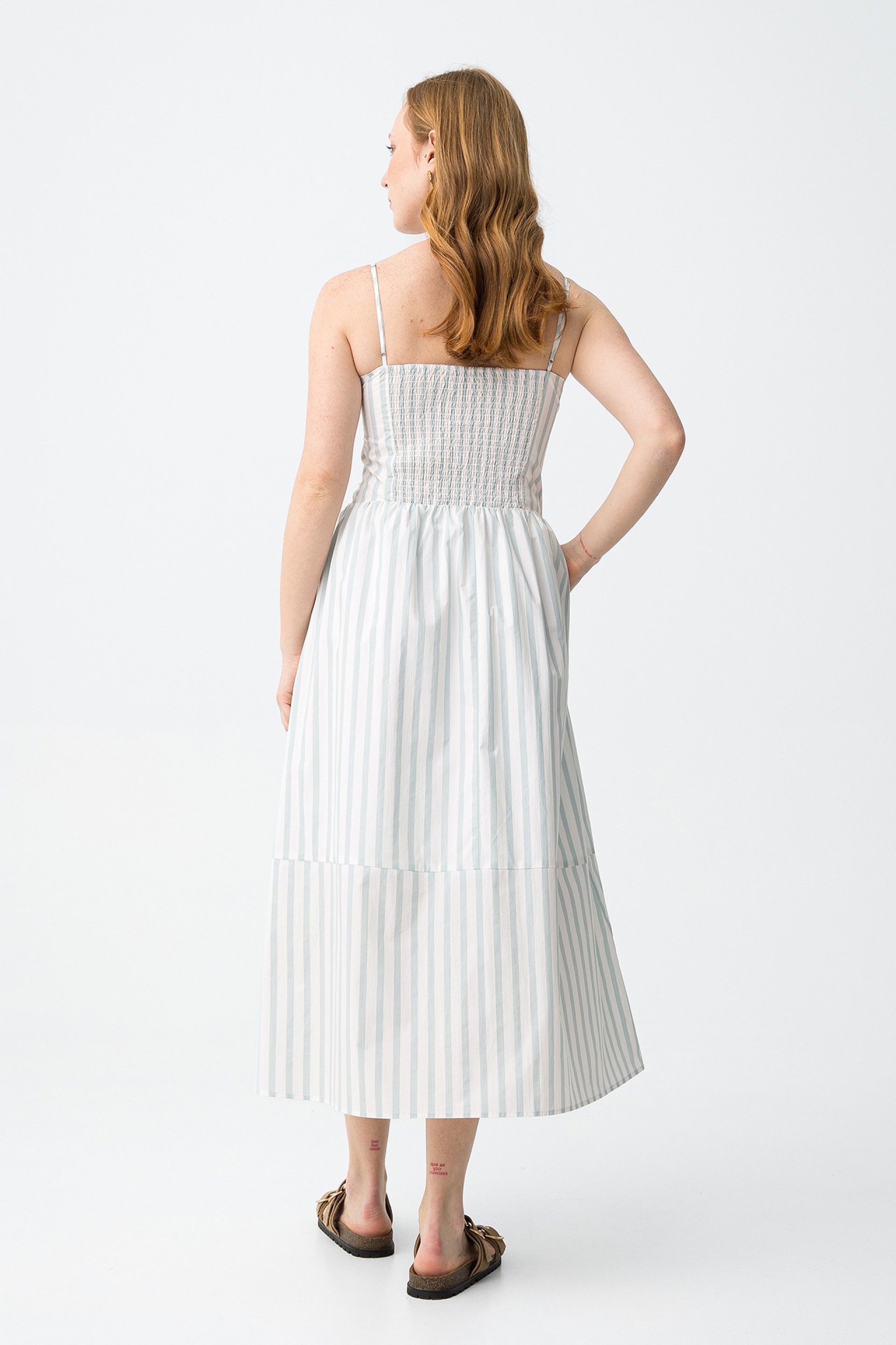 VESTIDO DE TIRANTES CON RAYA VERTICAL.